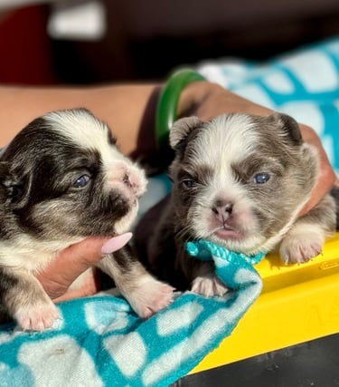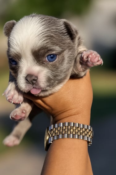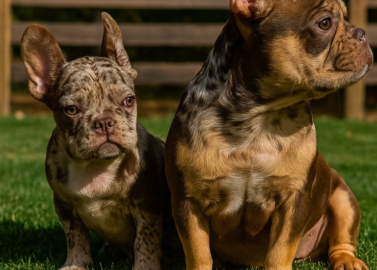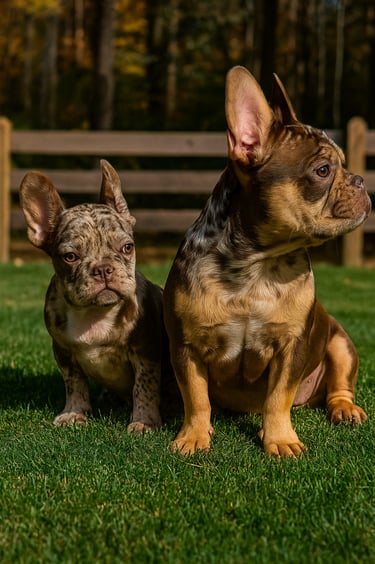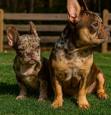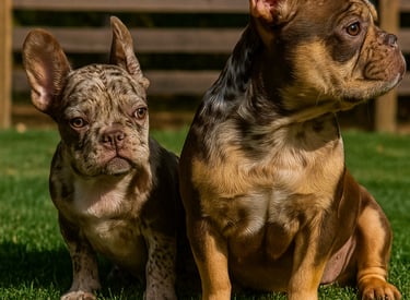 Highlighting our rare and beautiful double chocolate merle French Bulldogs. If it's Merle you're looking for, we have what you want.